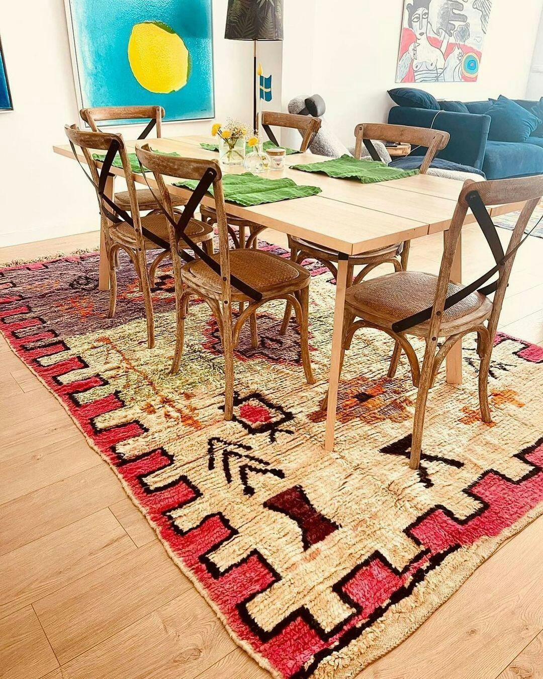 – Each rug tells stories of Moroccan tradition, woven with bright patterns and warm colors.